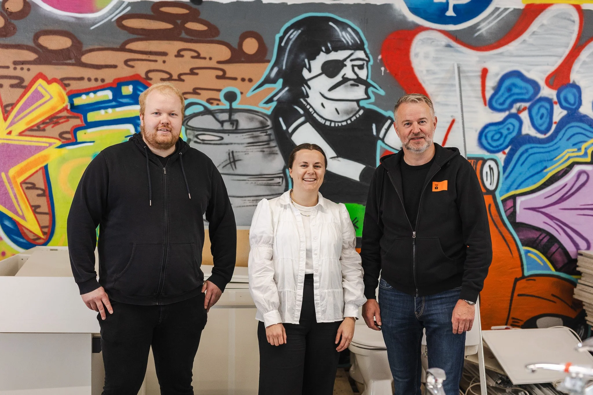 Fra høyre: Lars og Kristina, traineer i Retura Iris og Iris Produksjon, sammen med Lars Vestnes, daglig leder i Kirkens Bymisjon.